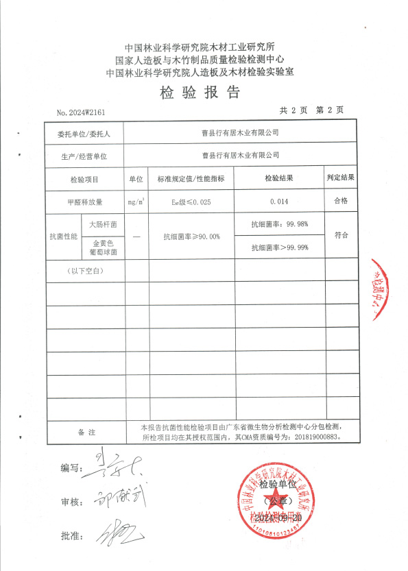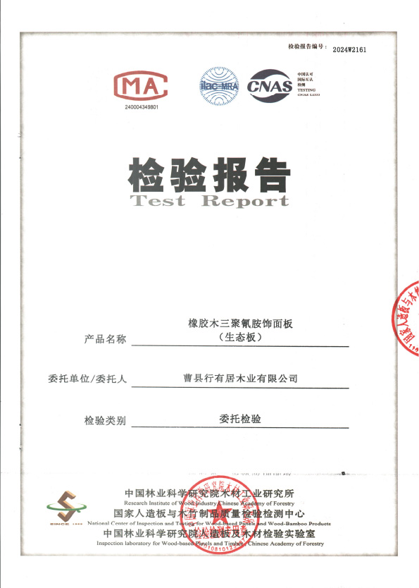 行有居ENF级橡胶木三聚氰胺饰面板检测报告