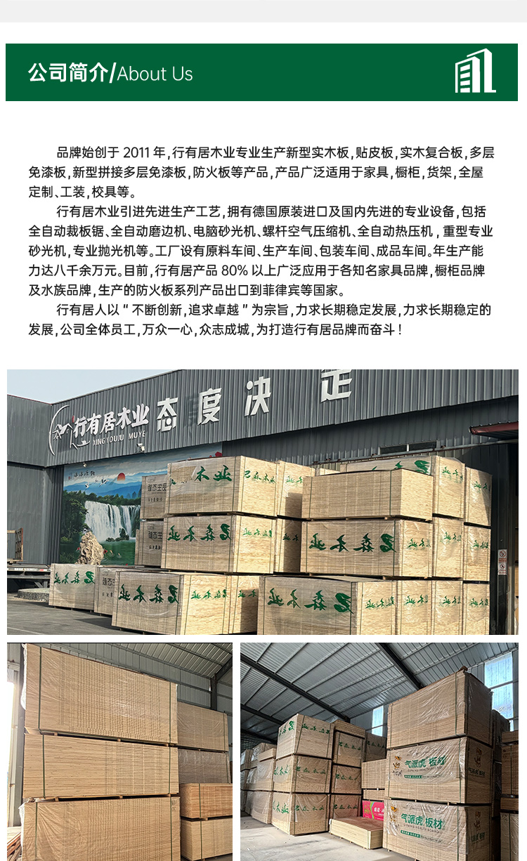 Specialize in the production of new types of solid wood boards, with the tenet of "continuous innovation and the pursuit of excellence".